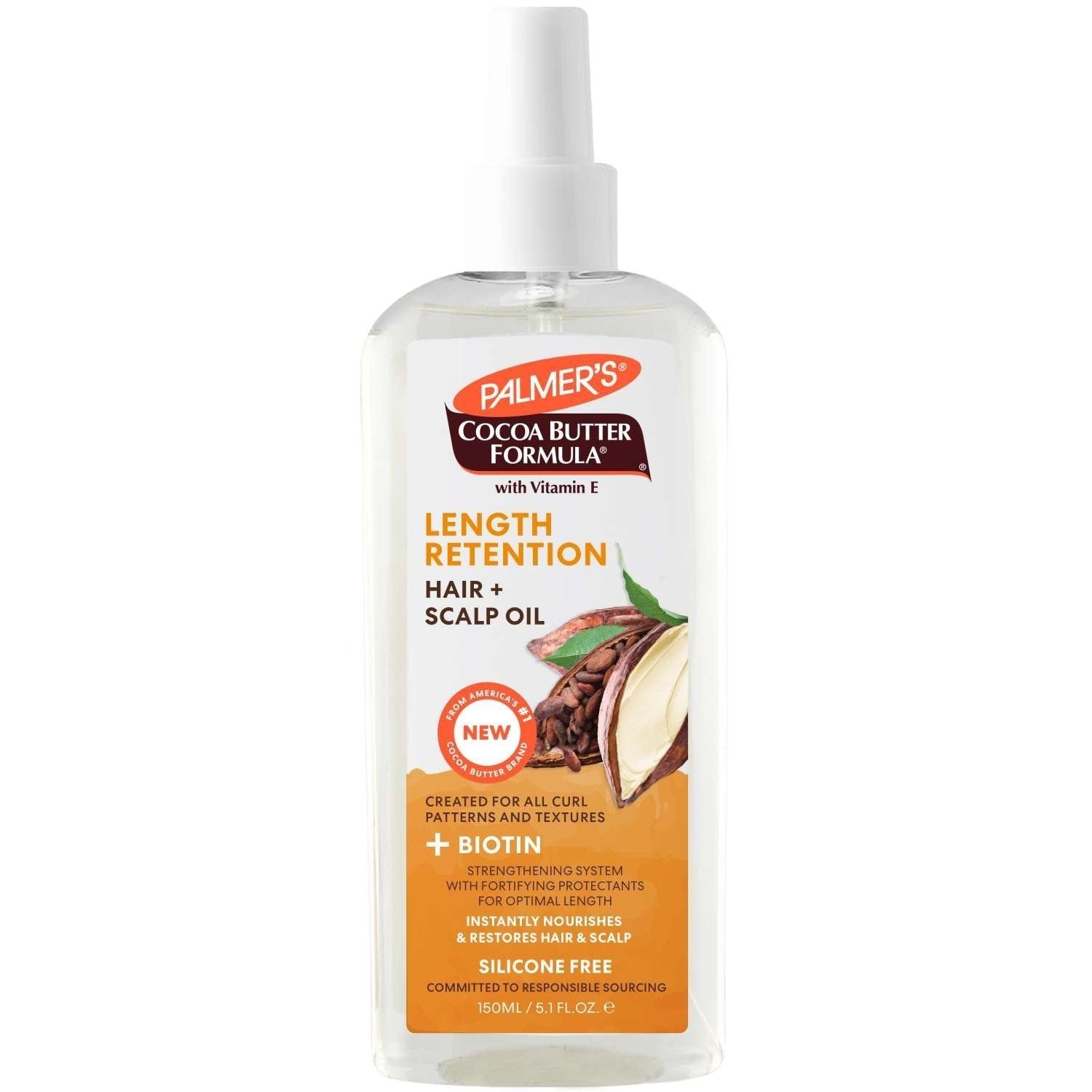 If youre a curly-haired girl looking for a product that wont weigh your hair down and give it the long-lasting shine it needs then Palmers Cocoa Butter Biotin Length Retention hair and scalp oil are what you need. It will help promote a healthy scalp and nourish your locks.